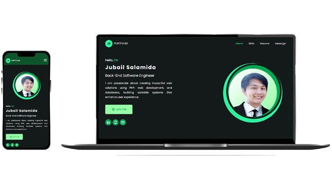 This portfolio website showcases my skills and projects, features a downloadable resume, and includes a contact form for easy communication. It is built using Vanilla PHP for the backend, Vanilla JavaScript for dynamic frontend interactions, and Tailwind CSS for a clean, responsive design.